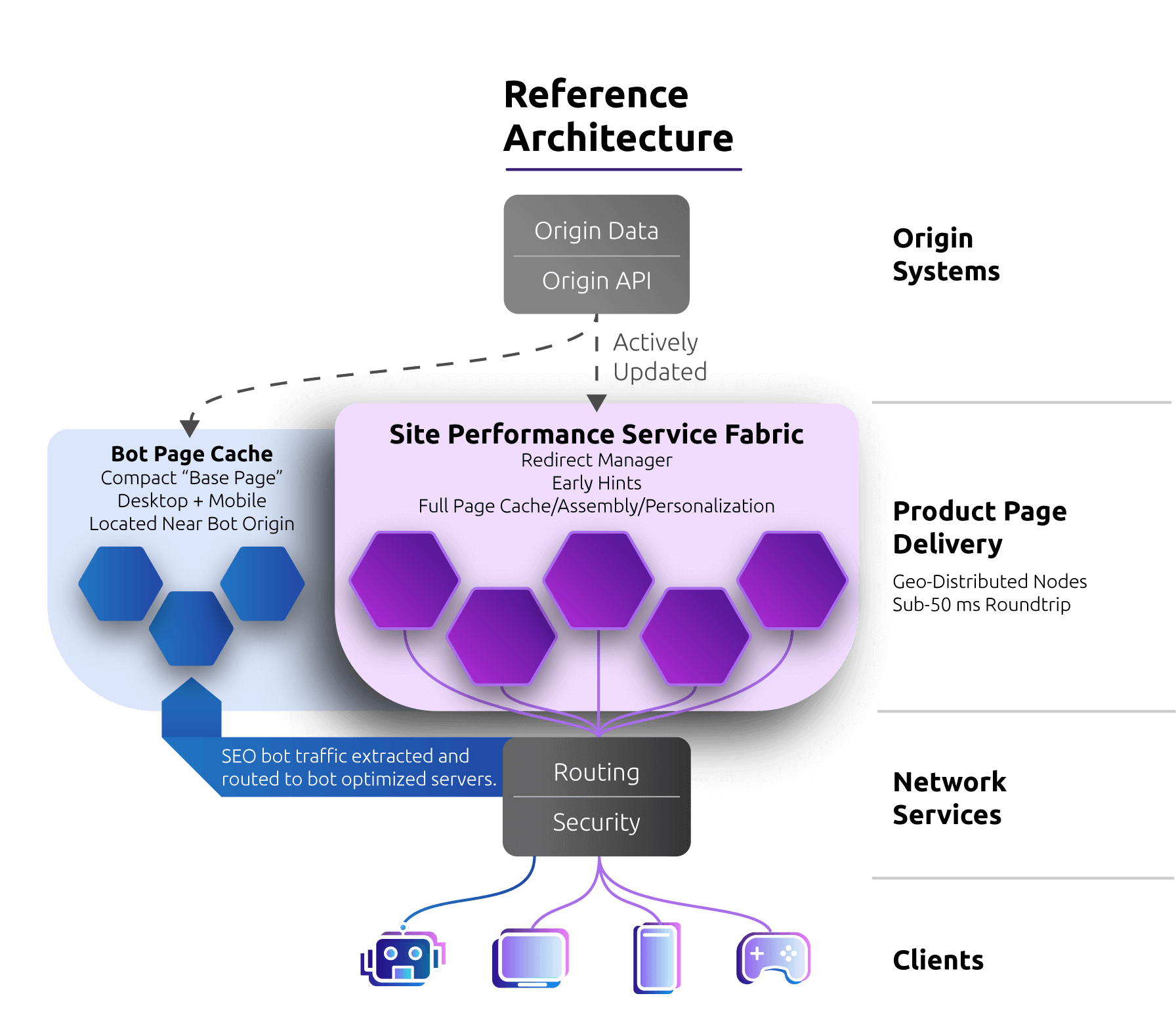 Search engine bots with limited crawl budgets can struggle to index everything for vast, ever-changing product catalogs. To accelerate indexing, Harper can identify SEO bot traffic and deliver an optimized “base page” that takes less time to deliver and less time to crawl. By leveraging this targeted approach, companies have seen crawl rates increase by as much as 400%.